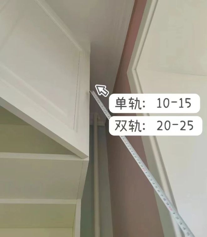 同时,打算做轨道窗帘的,就不要做一门到顶的柜子,顶部留出一定距离,保证柜门打开时,不会与轨道相撞。