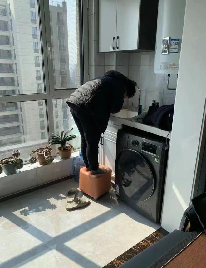 可入住后会发现,安装洗衣机后的台面真的有点高,每次洗手都要踮脚,要不然水就顺着手流一袖子,到冬天特别难受。